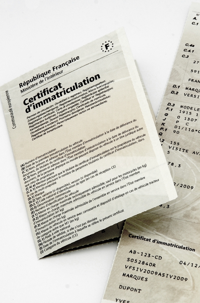 - Si votre véhicule dépend du nouveau système SIV (plaque au format AA-123-AA) : photocopie de la carte grise en cours (certificat d’immatriculation en cours).